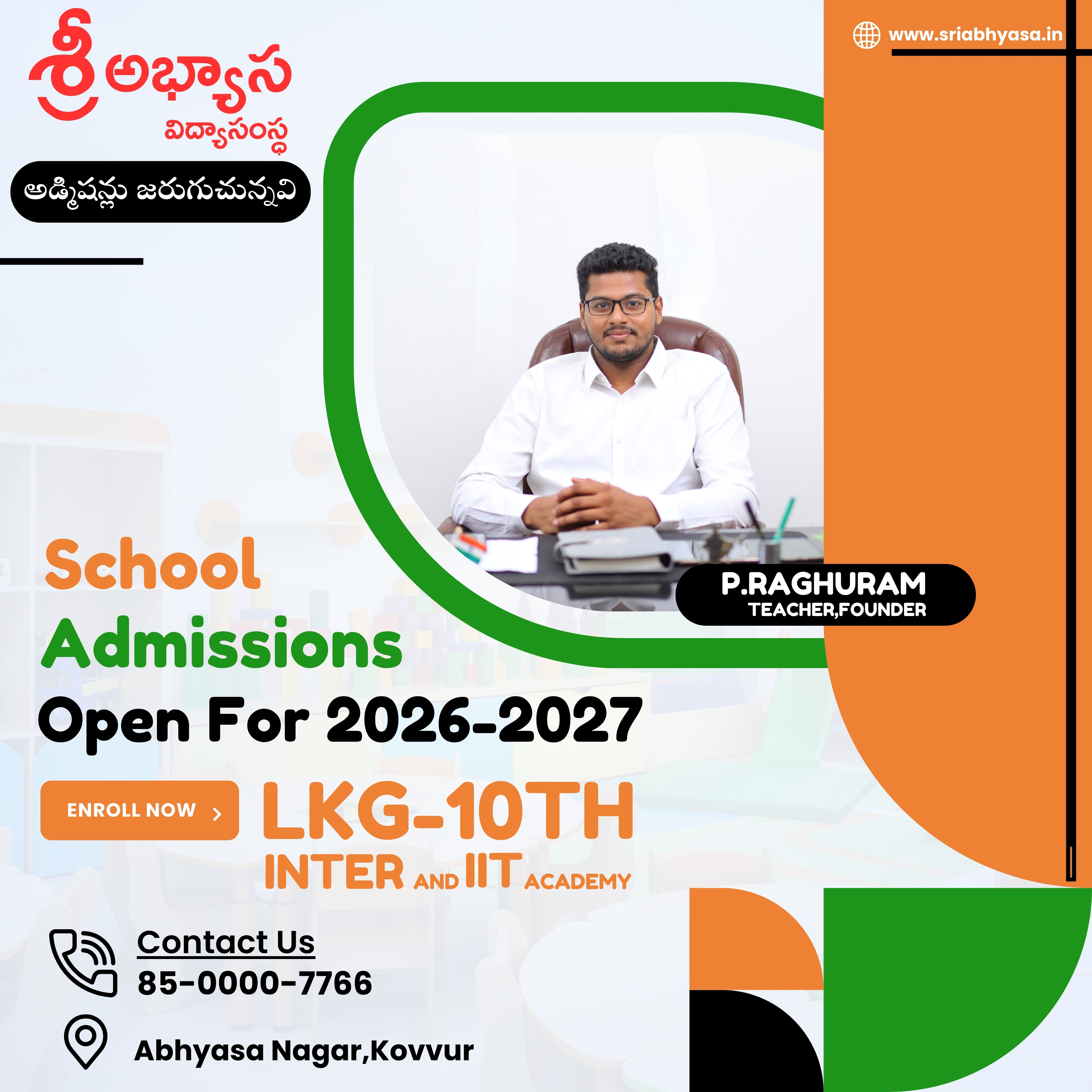 A Home Away from Home – The Right Place to Rise Located in the heart of a serene town, Sri Abhyasa is more than just an institution—it’s a nurturing space where students grow, learn, and excel in a lush green environment that inspires creativity and excellence.